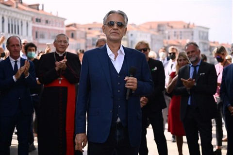 Andrea Bocelli a chanté le célèbre air de Puccini "Nessun Dorma" lors d'une brève cérémonie d'inauguration, tandis que le flot de gondoles, de taxis nautiques et de péniches du Grand Canal passait en dessous.