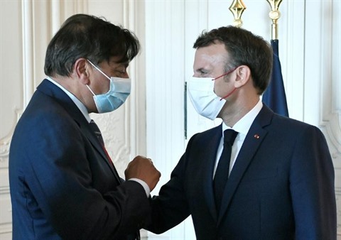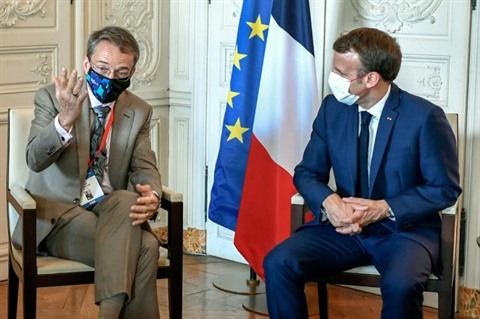 Emmanuel Macron rencontre le Pdg d'Intel Patrick Gelsinger lors du 4e forum "Choose France", à Versailles le 28 juin. Photo : AFP/VNA/CVN |