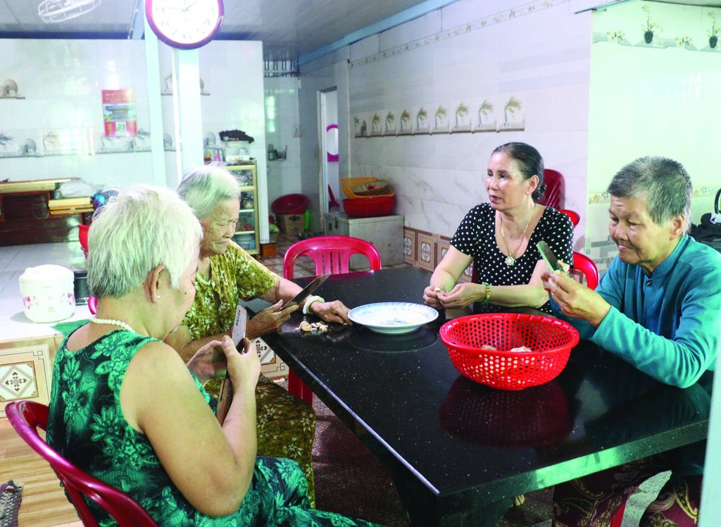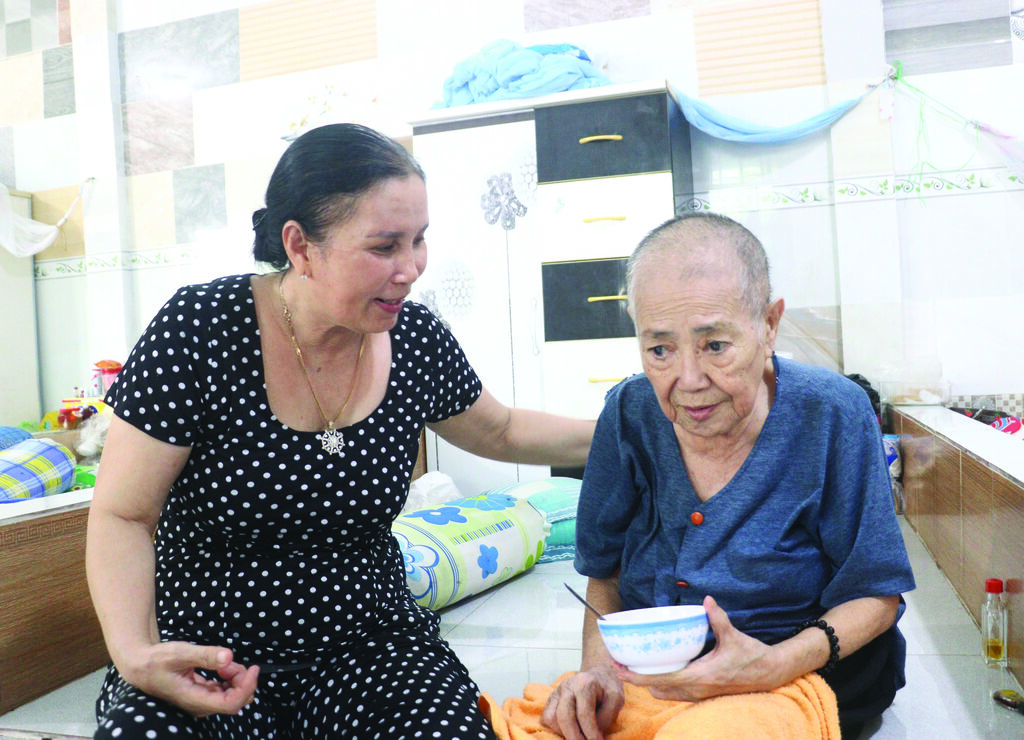 Chaque jour, elle se rend de Cân Tho à la maison pour participer à la préparation des repas, au ménage, à la toilette et aux soins des personnes âgées. Pendant ses moments libres, elle discute souvent avec eux.