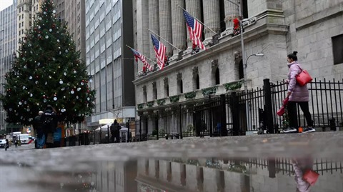 | Des passants devant le New York Stock exchange (NYSE) à Manhattan (New York), le 30 novembre. |