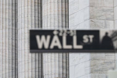 | Un panneeau Wall St devant le New York Stock Exchange à Wall Street (New York), le 23 mars. |
