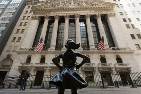 | La statue "Fearless Girl" face au New York Stock Exchange (NYSE) à Wall Street (New York), le 23 mars. |