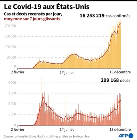 "Même si je me suis fait vacciner, je ne changerai pas ma distanciation sociale, je ne cesserai pas d'utiliser l'équipement de protection individuelle", comme le masque, a-t-il déclaré, ajoutant qu'il avait annulé ses projets de voyage pour Thanksgiving et Noël en raison du pic de contaminations aux États-Unis, où plus de 300.000 personnes sont déjà décédées du COVID-19.