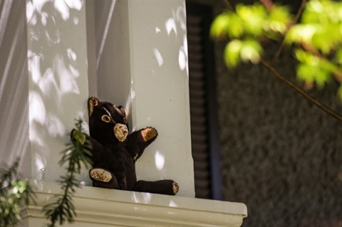 Il raconte par exemple qu'un homme et sa fille d'environ sept ans descendaient la rue, la fillette munie de petites jumelles pour bien traquer les Teddy bears. De quoi la distraire en ces temps de confinement.