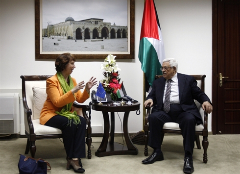 | Le président palestinien Mahmoud Abbas et la chef de la diplomatie européenne Catherine Ashton, le 25 octobre à Ramallah (Cisjordanie). Photo : AFP/VNA/CVN |