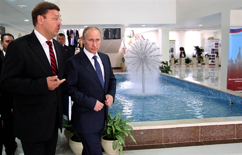 | Le président russe Vladimir Poutine (droite) visite le centre culturel russe, le 26 juin à Bethléem. |