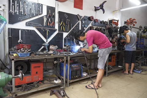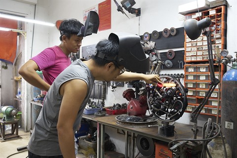 Avec environ 30 m2 de superficie, ABM Shop monte presque tous les objets de décoration intérieure : tables, chaises, horloges, ventilateurs et autres éléments de la maison. Leader dans un secteur peu connu, Tuân Anh a tout appris en autodidacte. Il transmet désormais son savoir-faire aux mécaniciens et artisans de son atelier.