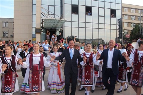 | L'ambassadeur du Vietnam en Roumanie, Trân Thành Công (centre), lors de Journées de la culture vietnamienne à Tulcea. |