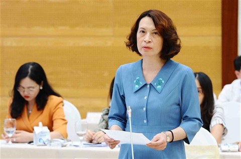| La vice-ministre de la Santé, Nguyên Thi Liên Huong, lors de la conférence de presse périodique du gouvernement. |