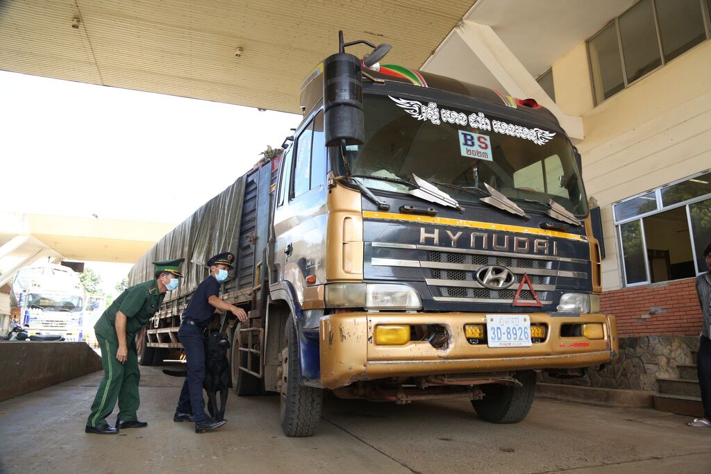 | Contrôle des marchandises à la porte-frontière de Xa Mat à Tây Ninh. |