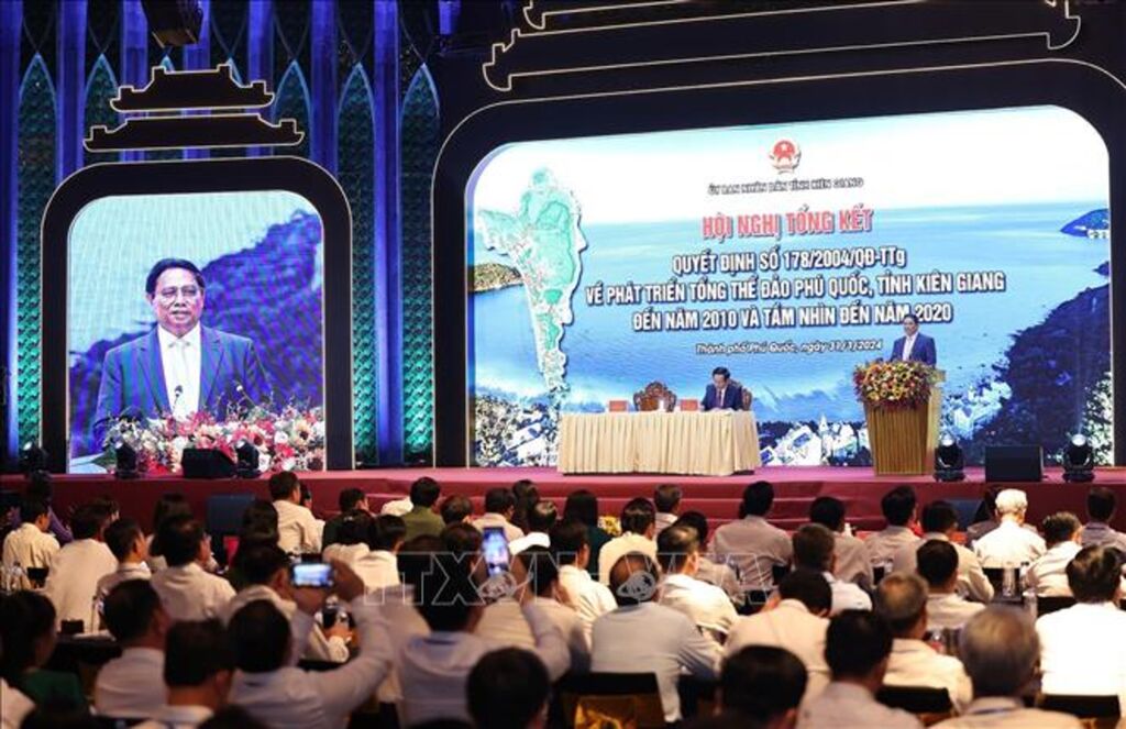 | Le Premier ministre Pham Minh Chinh préside la conférence résumant la décision 178 sur le développement global de l'île de Phu Quôc. |