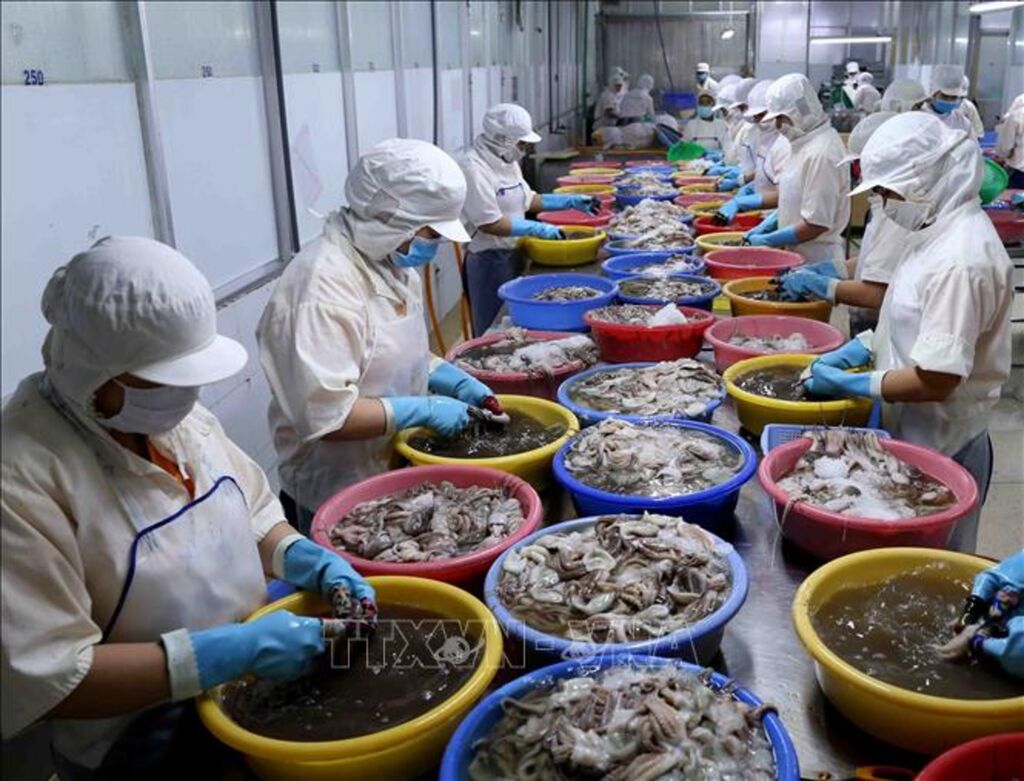| La transformation de fruits de mer dans une usine de Kiên Giang. |