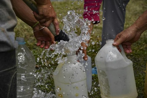 | Distribution d'eau potable à Caracas, au Venezuela, le 12 mars. |