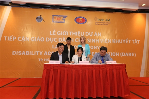 Le projet, qui durera jusqu'à fin 2017, sera mis en œuvre expérimentalement à l'Université des sciences sociales et humaines de Hô Chi Minh-Ville et à l’Université de pédagogie de Hô Chi Minh-Ville. L'objectif global est d'améliorer la capacité des étudiants handicapés en leur donnant les conditions essentielles, un soutien pédagogique, des outils d’étude, des bourses d’étude, et même des soutiens humains afin que ces jeunes puissent être intégrés et contribuer au développement de la société sur un pied d'égalité avec les autres citoyens. En outre, le projet prévoit d’améliorer la compréhension des questions liées au handicap pour les personnels et les professeurs des universités impliquées, de sorte qu’ils puissent développer des plans annuels venant à l'appui des étudiants handicapés.