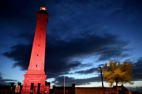 | Illumination du phare d'Eckmuhl, à l'occasion du mois d'"octobre rose" destiné à favoriser le dépistage du cancer du sein. |