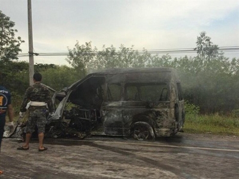 Selon le journal Bangkok Post, cet accident a eu lieu quand un autocar transportant des touristes vietnamiens de Bangkok vers la province de Nong Bua Lam Phu (Nord-Est) a heurté une remorque et après s'est enflammé dans le district de Kaeng Khro, province de Chaiyaphum. Parmi les morts, il y a neuf hommes et quatre femmes. Les blessés ont été transportés à l'hôpital.