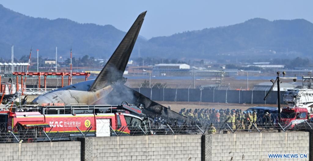 Le vol 7C2216 de Jeju Air en provenance de Bangkok (Thaïlande) est sorti de piste et s'est écrasé contre un mur extérieur. Son fuselage a été sectionné en deux et a pris feu.