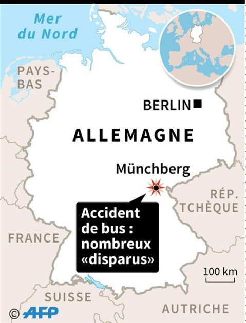 L'accident est survenu près de Münchberg, dans une zone forestière et montagneuse à la limite des États régionaux de Bavière et de Thuringe, non loin de la frontière tchèque, bloquant l'autoroute A9 dans les deux sens.
