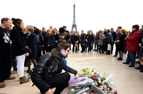 Sur le parvis du Trocadéro, les proches des victimes, émus, souvent les larmes aux yeux, se sont recueillis devant les photos des disparus posées à côté de bouquets de fleurs.