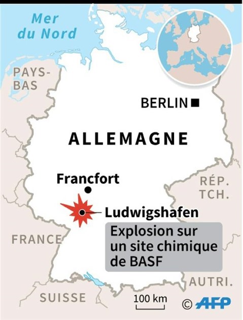 Aucune évacuation n'a été ordonnée à Ludwigshafen, ville de l'État régional de Rhénanie-Palatinat (Sud-Ouest du pays) de 160.000 âmes située sur les bords du Rhin en face de Mannheim et abritant le siège et le plus grand site industriel de BASF. Mais des numéros de téléphone d'urgence ainsi qu'un lieu d'information ont été mis en place par l'entreprise allemande.