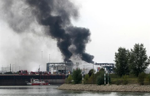 | Intervention des pompiers après une explosion sur un site du chimiste BASF à Ludwigshafen dans l'Ouest de l'Allemagne, le 17 octobre. |