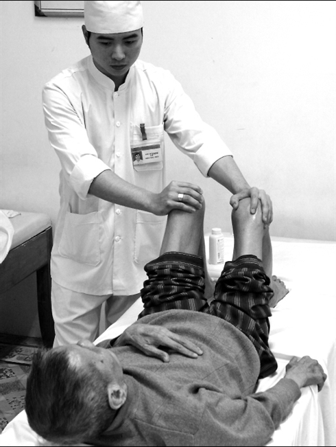 | Rééducation fonctionnelle pour un travailleur à l’hôpital de soin et de rééduction fonctionnelle relevant du Service de la santé de Hanoi. |