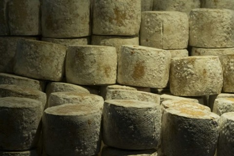 | Des tommes de brebis exposées au Salon de l'agriculture, le 24 février à Paris. |