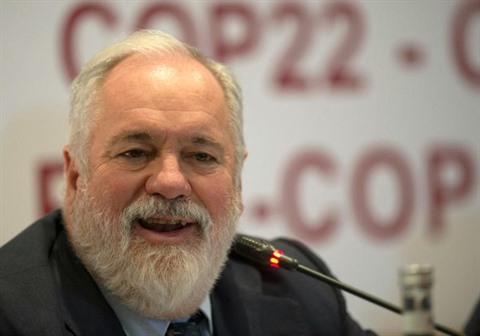 | Le commissaire européen chargé de l'Action pour le climat, Miguel Arias Canete à Marrakesh le 19 octobre. |