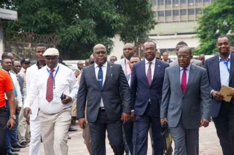 | Des opposants congolais arrivent pour signer un accord de cogestion avec le pouvoir de la RD Congo, le 31 décembre à Kinshasa. |