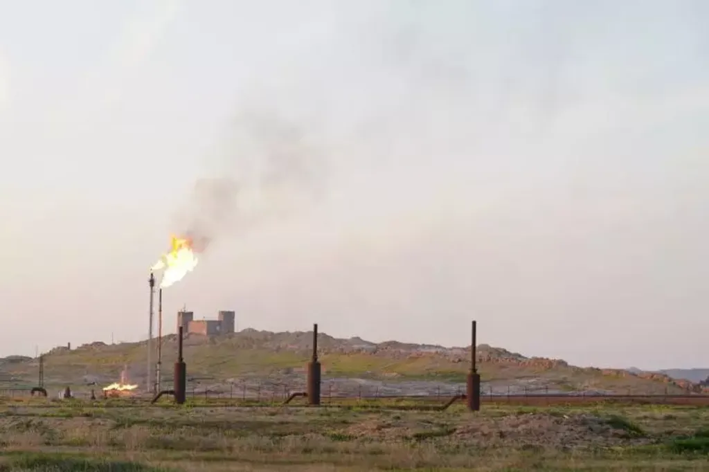 | Un champ pétrolier dans la région de Kirkouk, en Irak, le 2 avril 2023. |