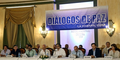 | Les participants à la conférence de paix entre le gouvernement colombien et les FARC, le 15 mai à La Havane. |