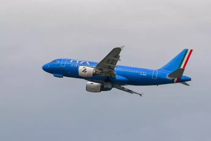 | Un avion d'Ita Airways à l'aéroport de Rome Fiumicino, le 26 septembre 2024. |