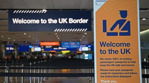 | Contrôle frontalier à l'aéroport de Londres Heathrow, en juillet 2019. |