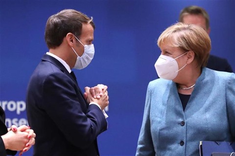 | La chancellière allemande Angela Merkel et le président français Emmanuel Macron lors de l'ouverture d'un sommet de l'UE, le 15 octobre à Bruxelles. |