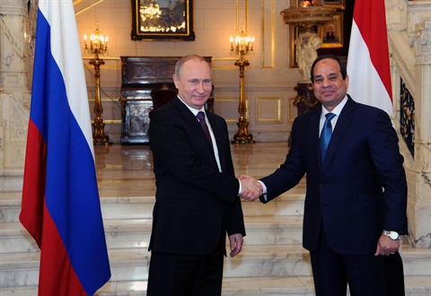 | Le président russe Vladimir Poutine (gauche) et son homologue égyptien Abdel Fattah al-Sissi, le 10 février au Caire. |