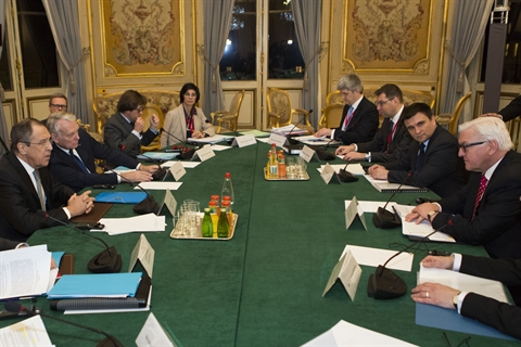 | Réunion entre les ministres des Affaires étrangères français, allemand, ukrainien et russe, le 3 mars à Paris. |