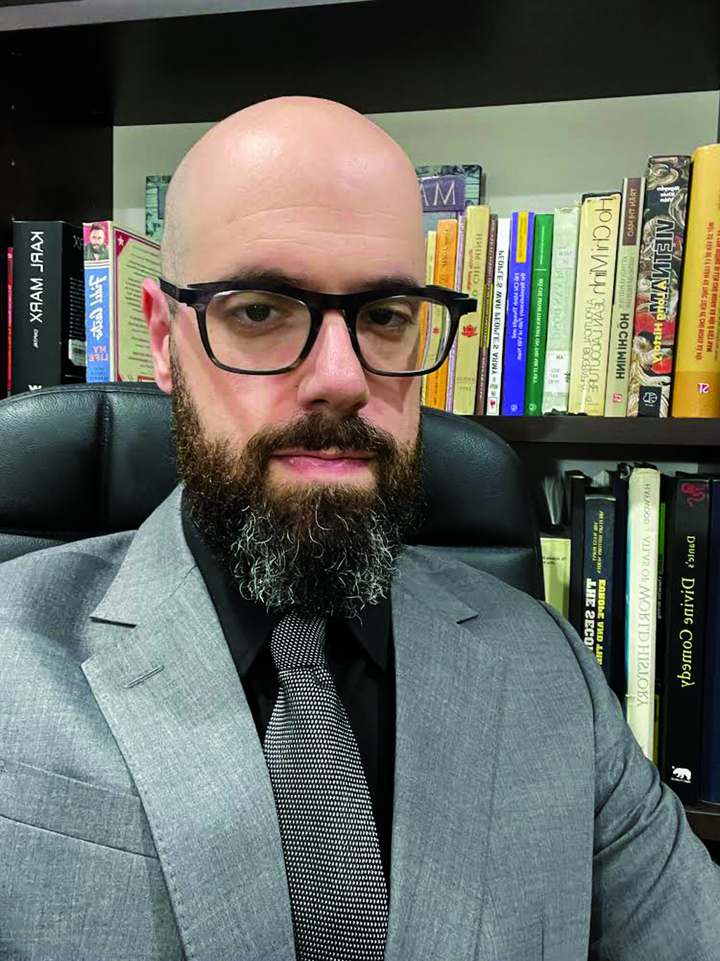 | L’Américain Amiad Horowitz, membre du Parti communiste des États-Unis d’Amérique (Parti communiste USA ou CPUSA) et reporter du journal “People’s World”. Photo : NVCC/CVN |