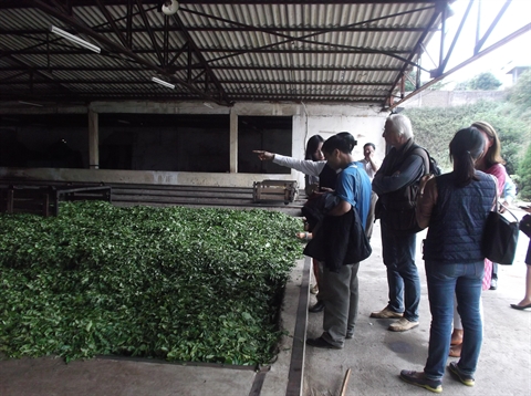 | Des experts vietnamiens et français visitent la Compagnie de thé de Môc Châu, dans la province de Son La. |