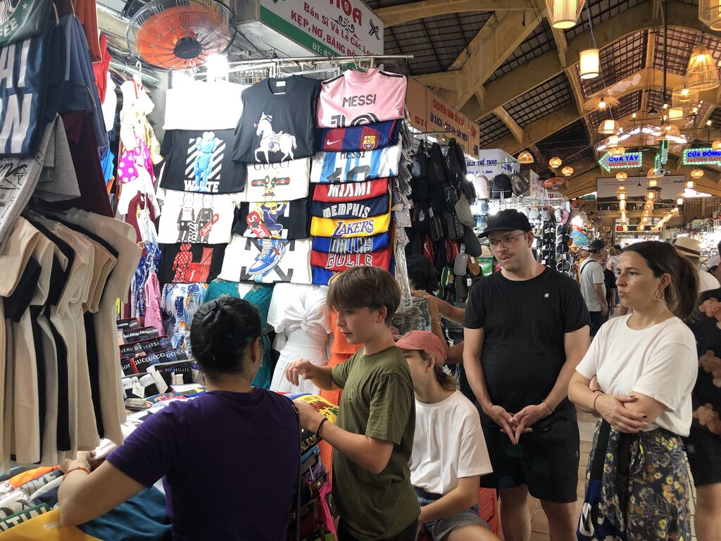 | Touristes étrangers au marché de Bên Thành à Hô Chi Minh-Ville. |