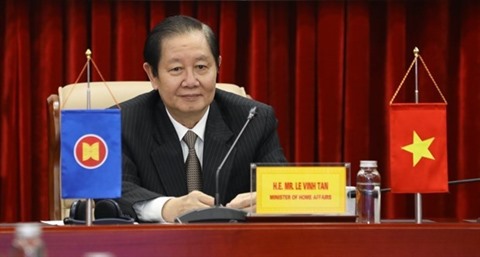 | Le ministre vietnamien de l’Intérieur, Lê Vinh Tân, lors de la visioconférence tenue le 18 novembre. |