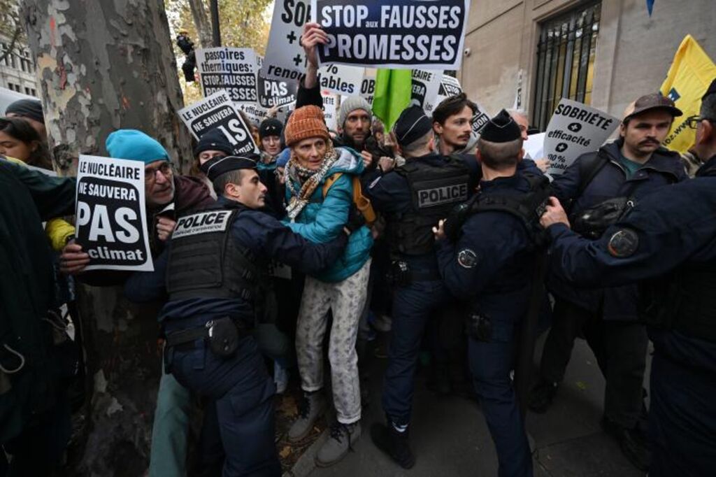 Repoussés par les forces de l'ordre qui ont fait usage de gaz lacrymogène, ils brandissaient également des pancartes pour dénoncer la relance du nucléaire par le gouvernement ou le recours encore massif aux énergies fossiles avec des slogans comme "le nucléaire ne sauvera pas le climat" ou "ni pétrole, ni charbon, ni gaz, non aux projets fossiles".