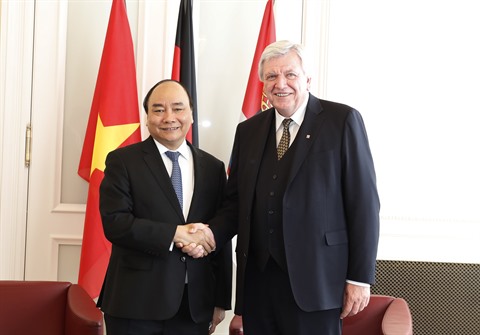 | Le Premier ministre Nguyên Xuân Phuc (gauche) et le ministre-président du Land de Hesse, Volker Bouffier. |
