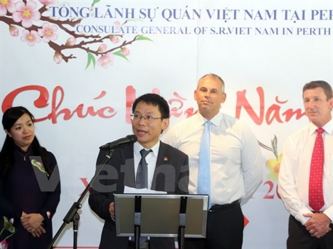 | Le consul général vietnamien à Perth, Lê Viêt Duyên, prend la parole lors d'une kyrielle d'activités qui a récemment été organisée dans cette ville australienne. |