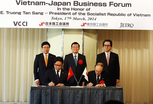 À cette occasion, Truong Tân Sang a assisté à la signature d'un mémorandum sur la coopération entre la Chambre de Commerce et d'Industrie du Vietnam et la Chambre homologue du Japon.