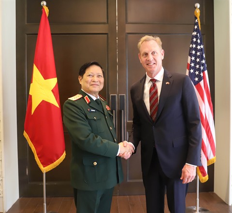 | Le ministre vietnamien de la Défense, Ngô Xuân Lich (gauche), et le secrétaire américain à la Défense p.i, Patrick Shanahan. |