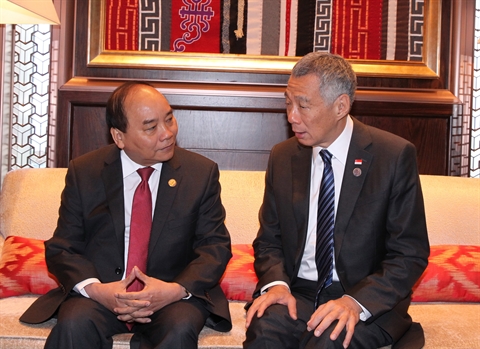Nguyên Xuân Phuc a discuté avec son homologue singapourien Lee Hsien Long des mesures permettant de promouvoir le partenariat stratégique et de questions régionaux et internationaux d’intérêt commun.