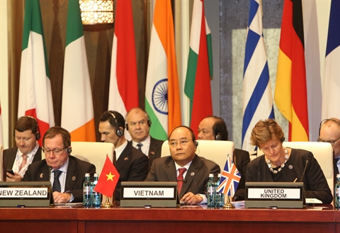 | Le Premier ministre Nguyên Xuân Phuc (centre) lors du 11e Sommet Asie-Europe (ASEM 11), le 15 juillet, à Oulan-Bator. |