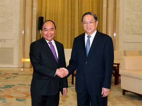 | Le Premier ministre Nguyên Xuân Phuc (gauche) et Yu Zhengsheng, président du Comité national de la Conférence consultative politique du peuple chinois, le 12 septembre à Pékin, Chine. |