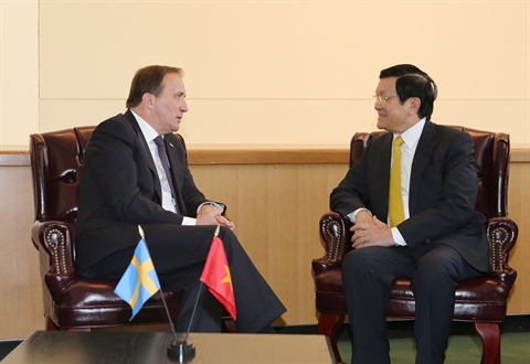 | Rencontre entre le président Truong Tân Sang (droite) et le Premier ministre suédois Stefan Löfven. |