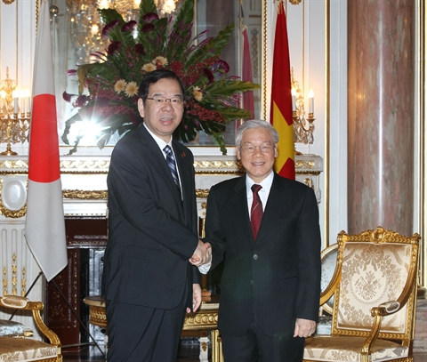Lors de sa rencontre avec le président du PDJ, Okada Katsuya, Nguyên Phu Trong a affirmé que le Parti et l’Etat vietnamiens prennent en considération leurs relations avec le Japon, le considérant comme un partenaire important de premier rang sur le long terme, et souhaitent s'efforcer, avec le Japon, de davantage promouvoir les bonnes relations entre les deux pays. Il s'est déclaré convaincu que le PDJ continuerait de contribuer activement et efficacement au développement des relations bilatérales.